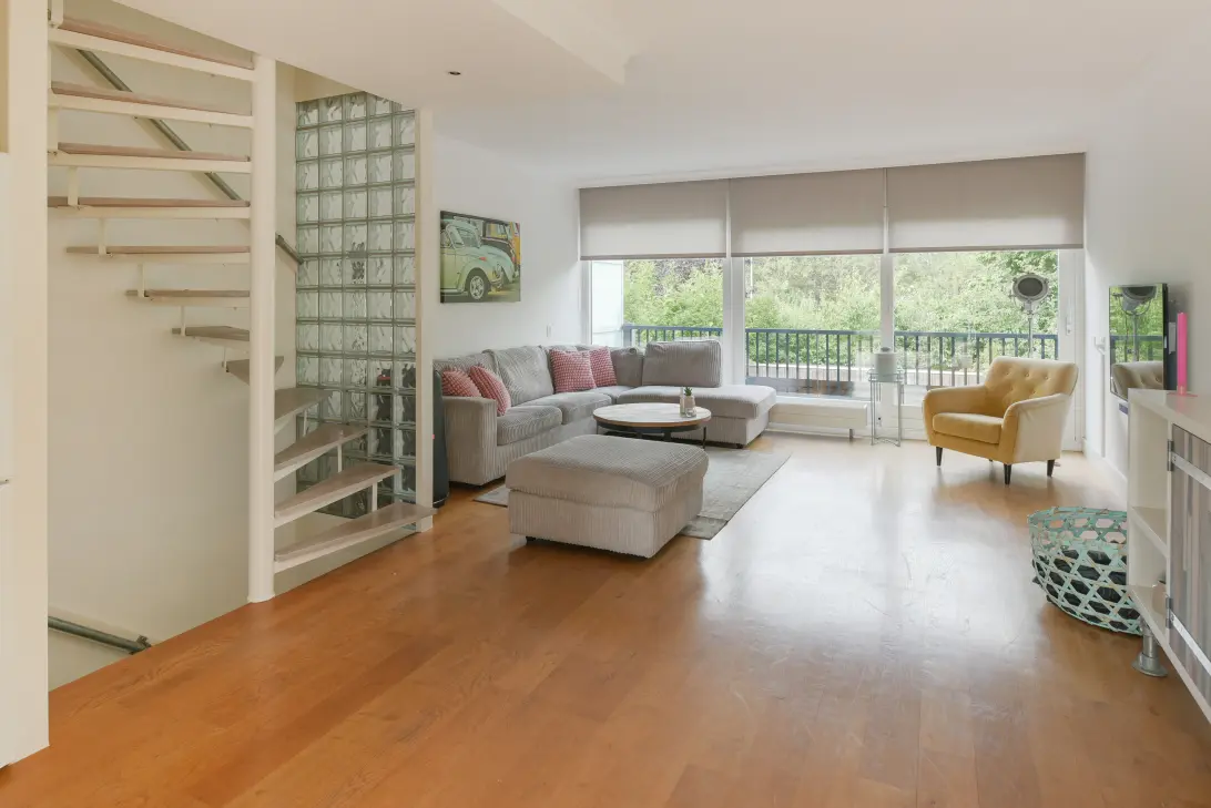 De zithoek aan de achterzijde is hét plekje om te genieten van het uitzicht op de tuin. Is het een warme dag? Geen probleem, dan doe je de deur open en stap je zo het balkon op. Ook aan de voorzijde kijk je uit op een balkon. Deze hoek zou wel eens de perfecte thuiswerkplek voor jou kunnen zijn.