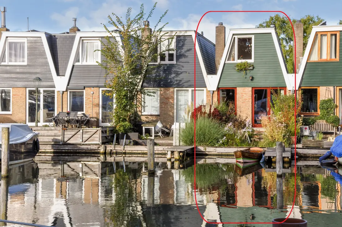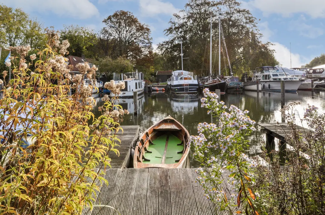 De woning beschikt over een eigen parkeerplaats, een beschutte voortuin, een achtertuin en een aanlegsteiger met een boxmaat van 4,50 x 10,00 meter. Vanaf het terras loopt u rechtstreeks naar uw steiger, zodat u zo in uw plezierjacht kunt stappen en binnen enkele minuten op het IJ bent.