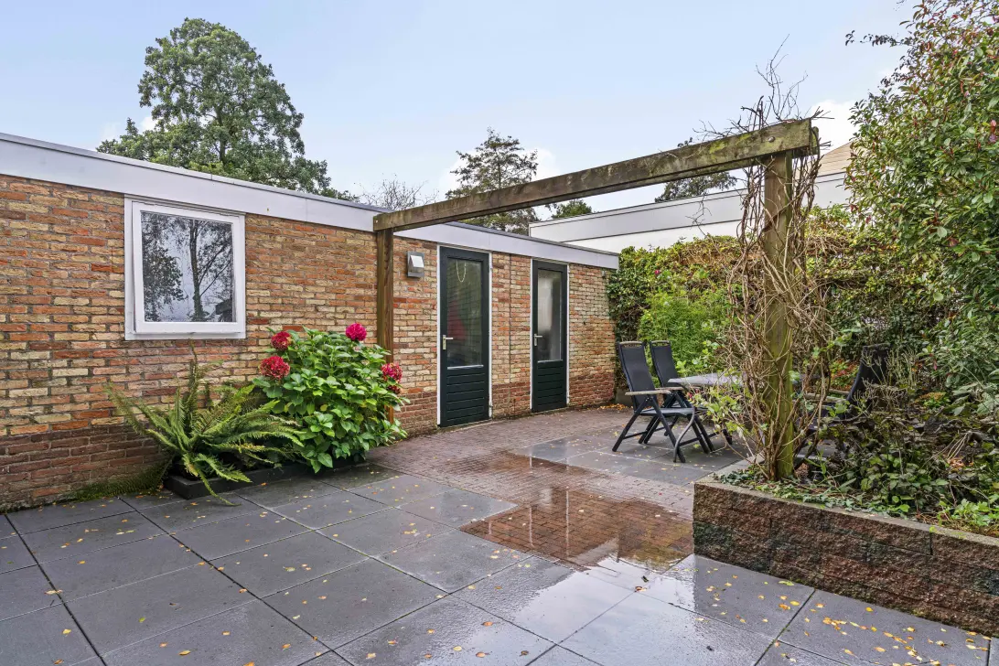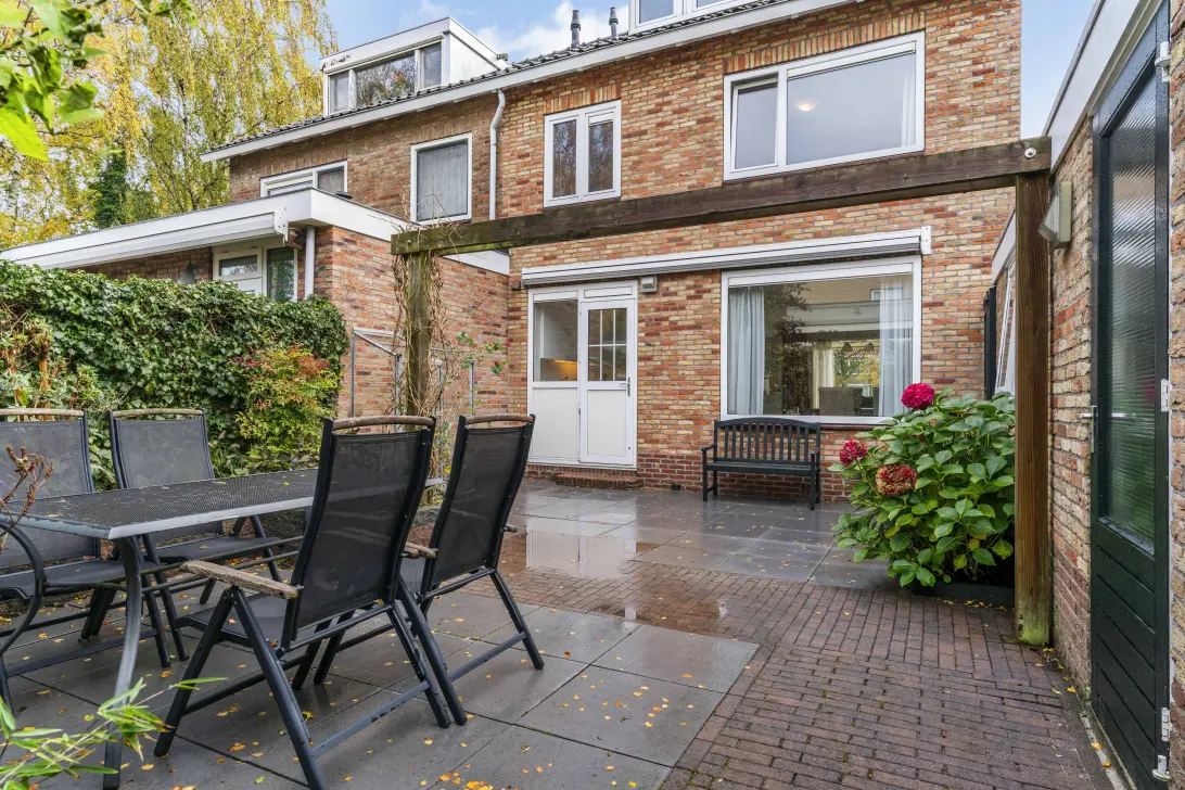 De achtertuin, gelegen op het westen, is onderhoudsvriendelijk aangelegd en biedt volop zon en privacy dankzij het ontbreken van directe achterburen. Parkeergelegenheid voor meerdere auto's op het pad voor de garage.
