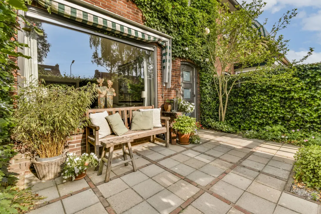 - Zonnige achtertuin op het oosten met berging en achterom
