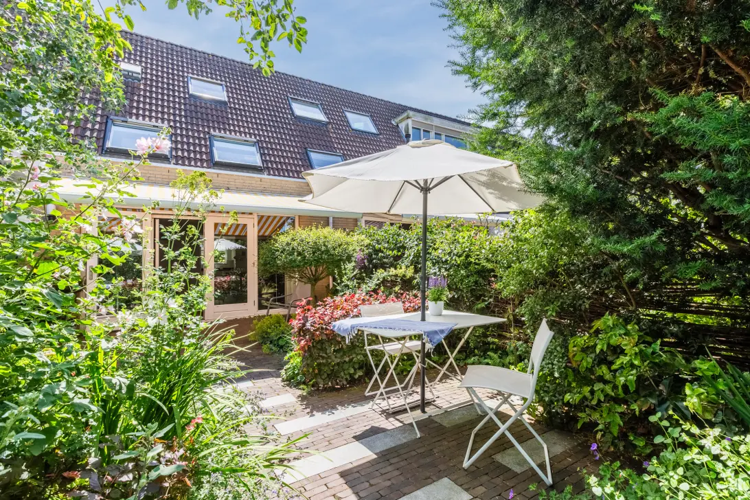 Het huis beschikt over een diepe en fraai aangelegde achtertuin van 57 m². De tuin is sfeervol ingericht met zowel groen als tegels. Deze sfeervolle buitenruimte biedt alle rust en privacy om volop van het mooie weer te genieten. Dankzij de goede beschutting zit je hier heerlijk vrij. Er is bovendien elektrisch bedienbare buitenzonwering aanwezig.