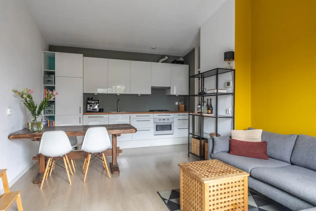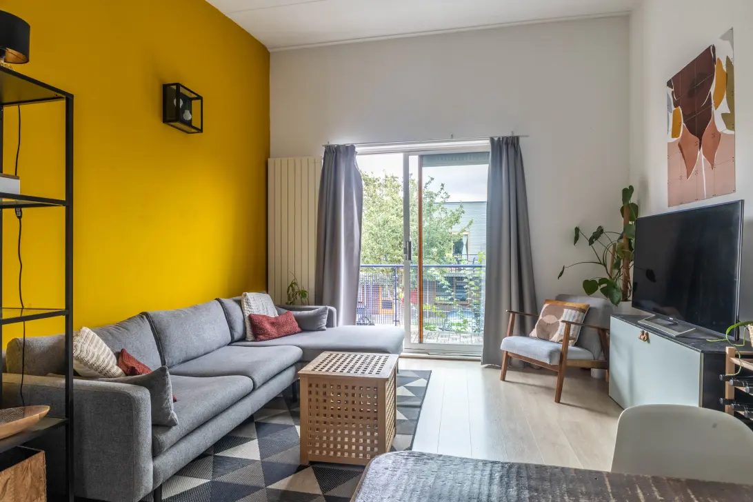 Het appartement is volledig afgewerkt met een fraaie laminaatvloer, hoge witte plinten en strak stucwerk.