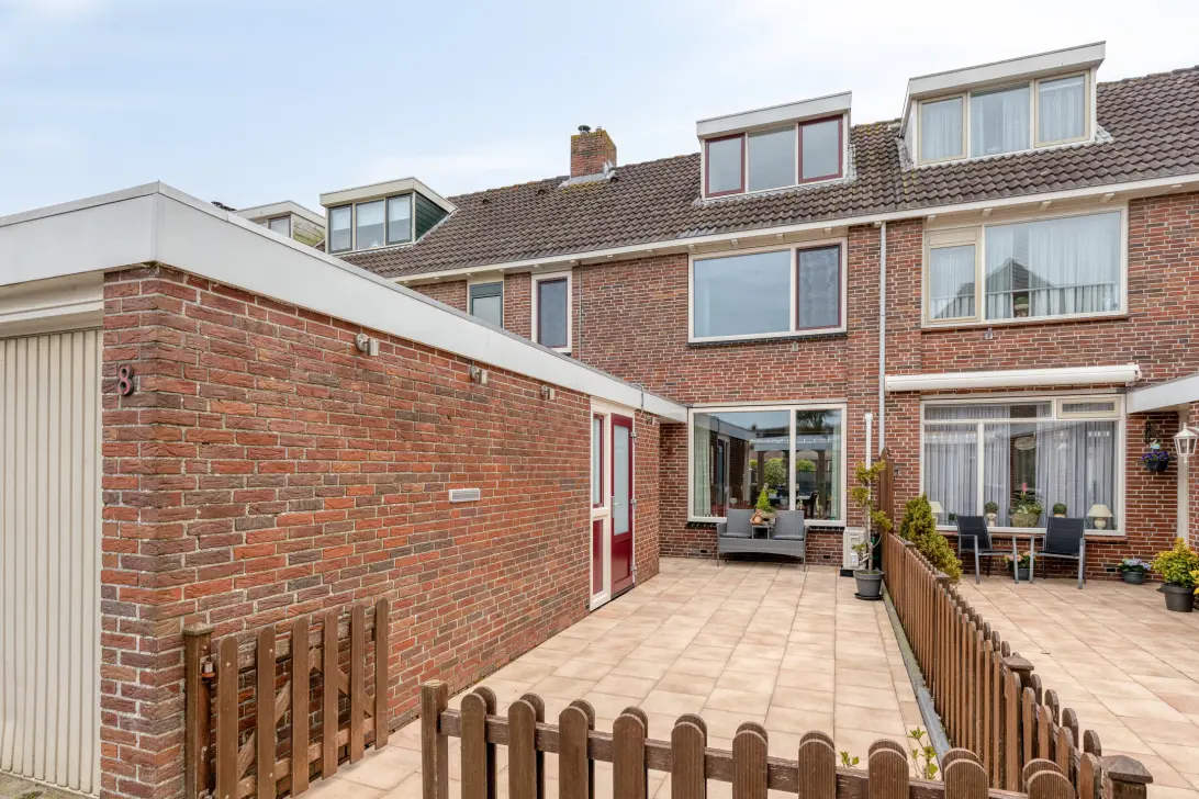 De achtertuin ligt op het zuidwesten waardoor je van vroeg in de middag tot laat in de avond van de zon kunt genieten. De tuin is maar liefst ca. 12 meter diep en is mooi aangelegd met kunststof tuinschermen, sierbestrating, beplanting en een tuinhuisje.