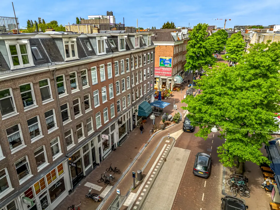 Spaarndammerstraat is located in the popular Spaarndammerbuurt, a neighborhood that has seen significant growth in recent years while retaining its authentic charm. You’ll live on a lively street lined with characteristic façades, original shops, and an excellent blend of old and new. The area is known for its culinary hotspots such as Dignita Westerpark for brunch and coffee, Café de Walvis for drinks, Moos for a lovely meal, Bbrood for fresh bread, and for something quick, De Pizzabakkers or 45 Yummie Sushi & Bowls. The neighborhood also offers excellent connectivity — just five minutes by bike to Amsterdam Central Station, with public transport and the A10 ring road also nearby. It’s an ideal location for those who love city life, nature, and good food.