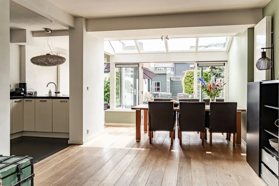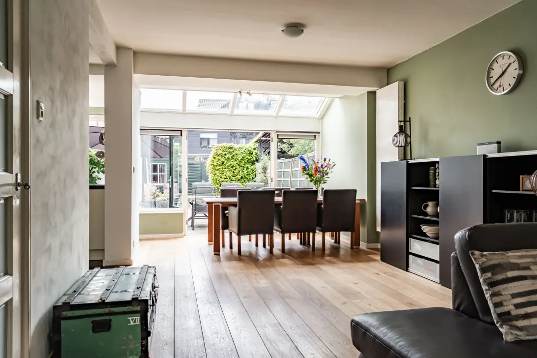 Deze eind jaren ’50 woning is verrassend ruim. De uitgebouwde woonkamer met erker aan de voorzijde en openslaande deuren in de serre naar de achtertuin, voelt licht en luchtig. De moderne open keuken met bar is een gezellige plek voor ontbijt met de kinderen of een kop koffie terwijl je het nieuws leest. Door de dubbele openslaande deuren aan de achterzijde haal je de zomer van buiten naar binnen. De tuin ligt op het zuiden: volop zon én beschut tegen de wind. Achterin staat een ruime berging met achterom, perfect voor veel fietsen, het speelgoed en al het tuingereedschap.