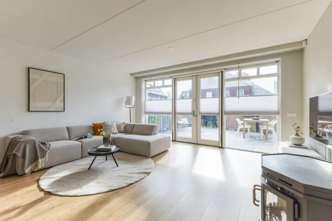Via de verzorgde voortuin met eigen oprit stap je binnen in een lichte hal met modern toilet, trapkast en handige berging. De keuken aan de voorzijde is ruim opgezet en perfect voor lange ontbijtochtenden of kookavonden met vrienden. Aan de achterzijde vinden we de woonkamer – met openslaande deuren richting de tuin. Licht, lucht en leefruimte in één vloeiende lijn. Fijn pluspunt voor in de wintermaanden, laminaatvloer met vloerverwarming en de fantastische haard voor de echte sfeer.