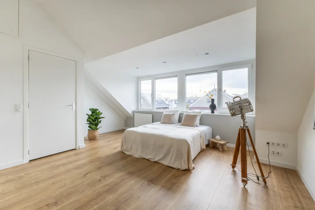 Op zolder vind je een riante vierde slaapkamer met een fantastische plafondhoogte van ruim drie meter. Dit is de perfecte master suite, compleet met eigen badkamer voorzien van douche, wastafel en derde toilet en de aansluiting voor de wasmachine en droger. Ideaal voor ouders, logees of een luxe werkkamer – net wat jij nodig hebt.