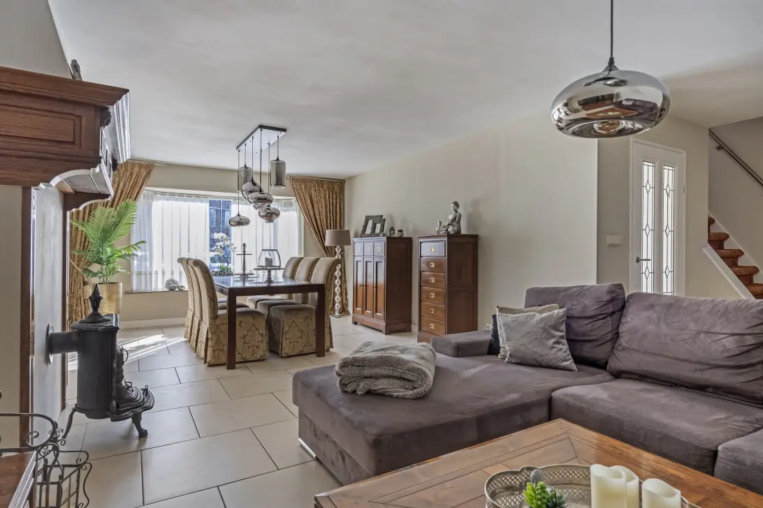 Eerste verdieping: via de open trapopgang is de eerste verdieping te bereiken. Overloop met toegang tot alle vertrekken. Grote slaapkamer aan straatzijde met inloopkast en tweede slaapkamer aan achterzijde voorzien van airco en rolluik. Betegelde wasruimte met wasmachine/ droger opstelling.