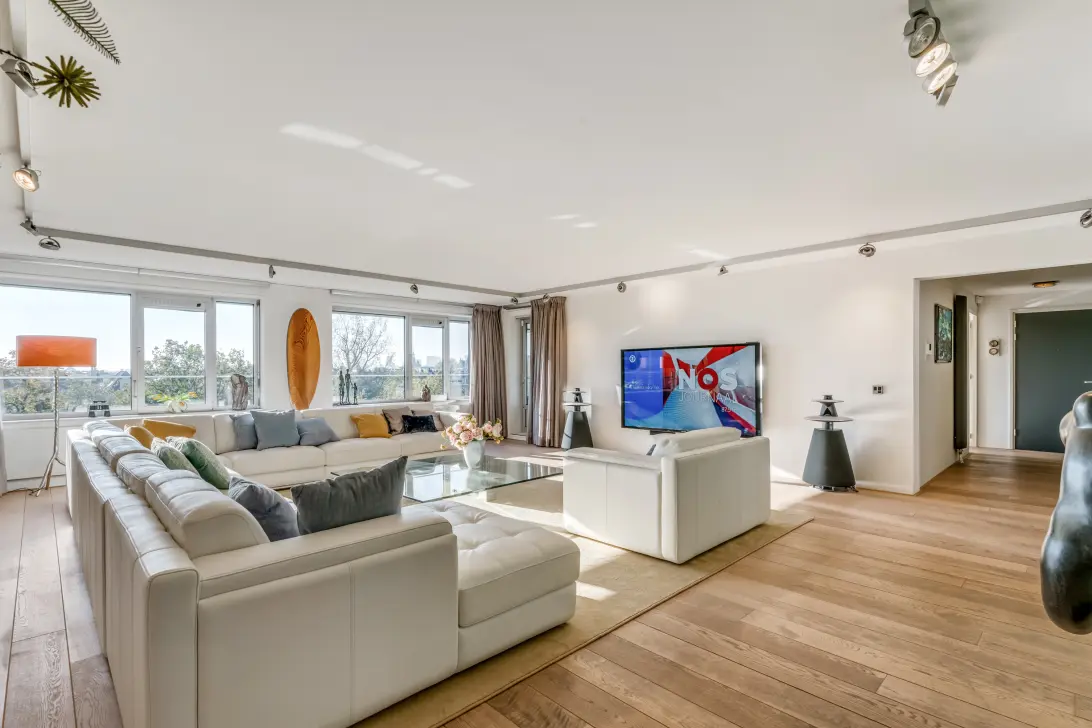 Situated on the sixth floor of the prestigious Byzantium complex, this apartment offers exceptional privacy and panoramic views over the Vondelpark and the Amsterdam skyline, from the Rijksmuseum to the Zuidas. Thanks to its favorable position within the building – free from overlooking neighbors and without direct connection to offices or terraces like other available apartments in the building – you enjoy maximum peace, freedom, and privacy.