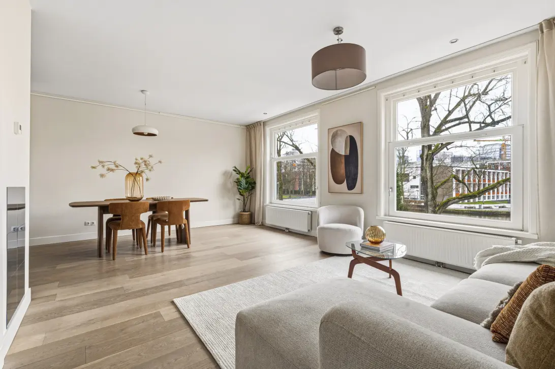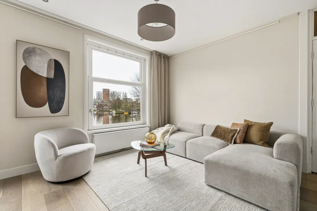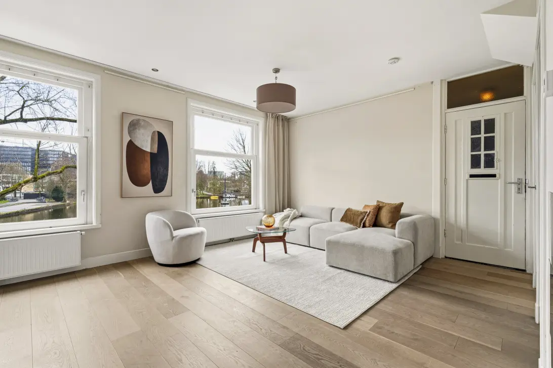 Situated in a prime location along the quay, with open views over the Zuider Amstelkanaal, this spacious 3-room apartment is located on the first floor. The apartment features a beautiful oak parquet floor, a generous balcony, and a modern kitchen and bathroom. All window frames have been replaced and are fitted with insulating glazing.