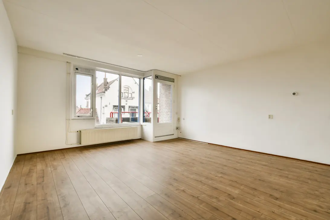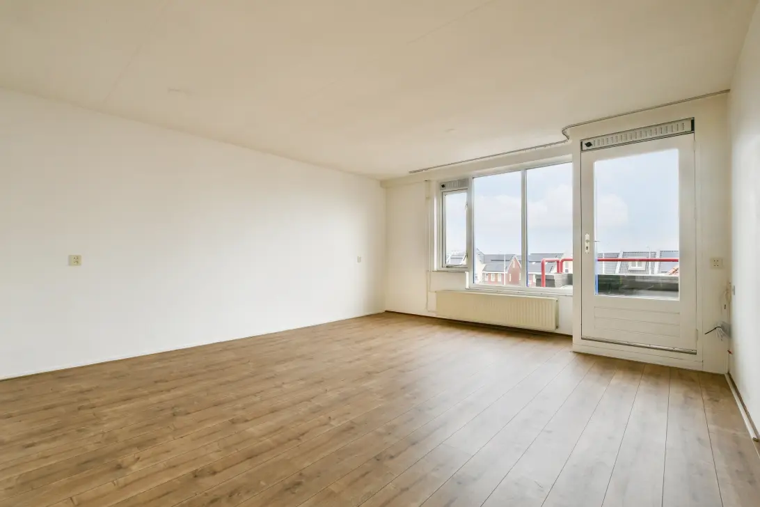 De zonnige woonkamer heeft dankzij de grote ramen aan weerzijden een fijne lichtinval. De open indeling geeft de living een ruimtelijk gevoel. Aan de achterzijde is er een grote schuifpui die toegang geeft tot het royale balkon op het zuidwesten, een perfecte plek waar je tot laat van de zon kunt genieten. Aan de voorzijde vind je een tweede, kleiner balkon. De woonkamer heeft een laminaatvloer in brede delen.