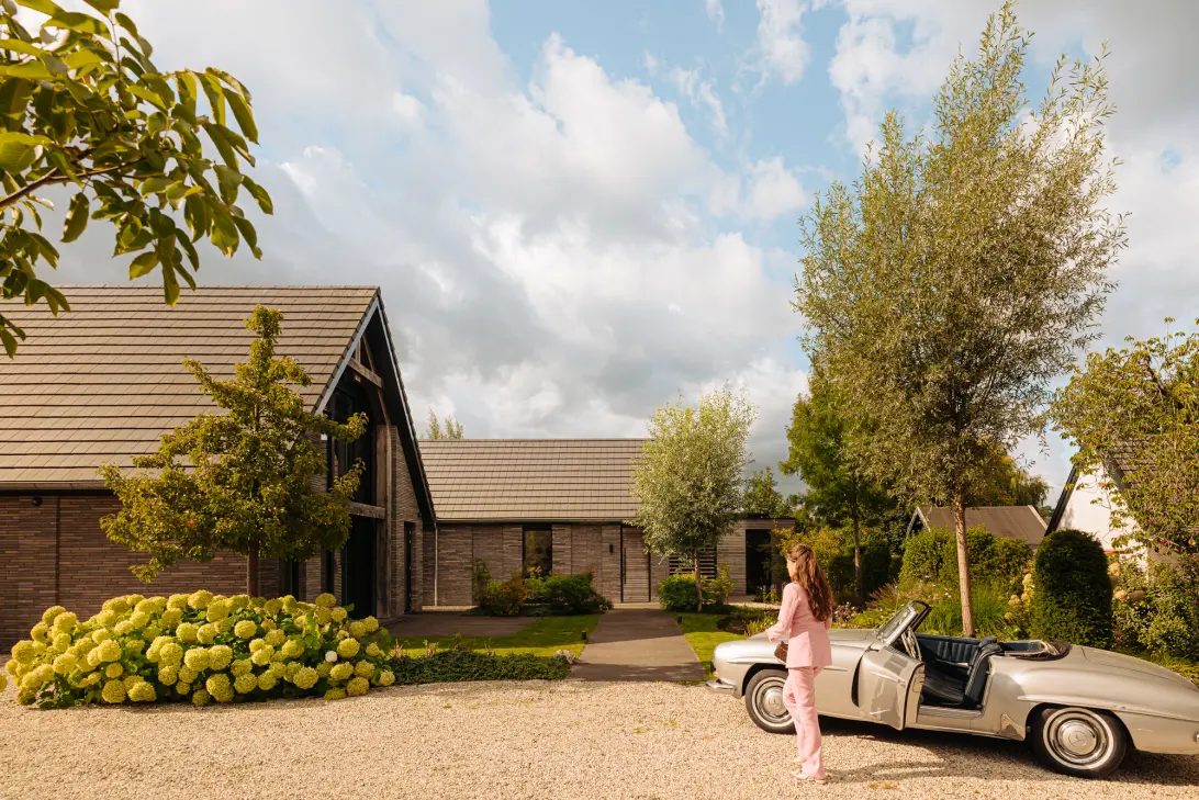 Ook aan parkeren is gedacht. Op eigen terrein is ruimte voor meerdere auto’s. De vrijstaande garage, uitgerust met een autolift, biedt bescherming voor de speciale uitvoeringen.