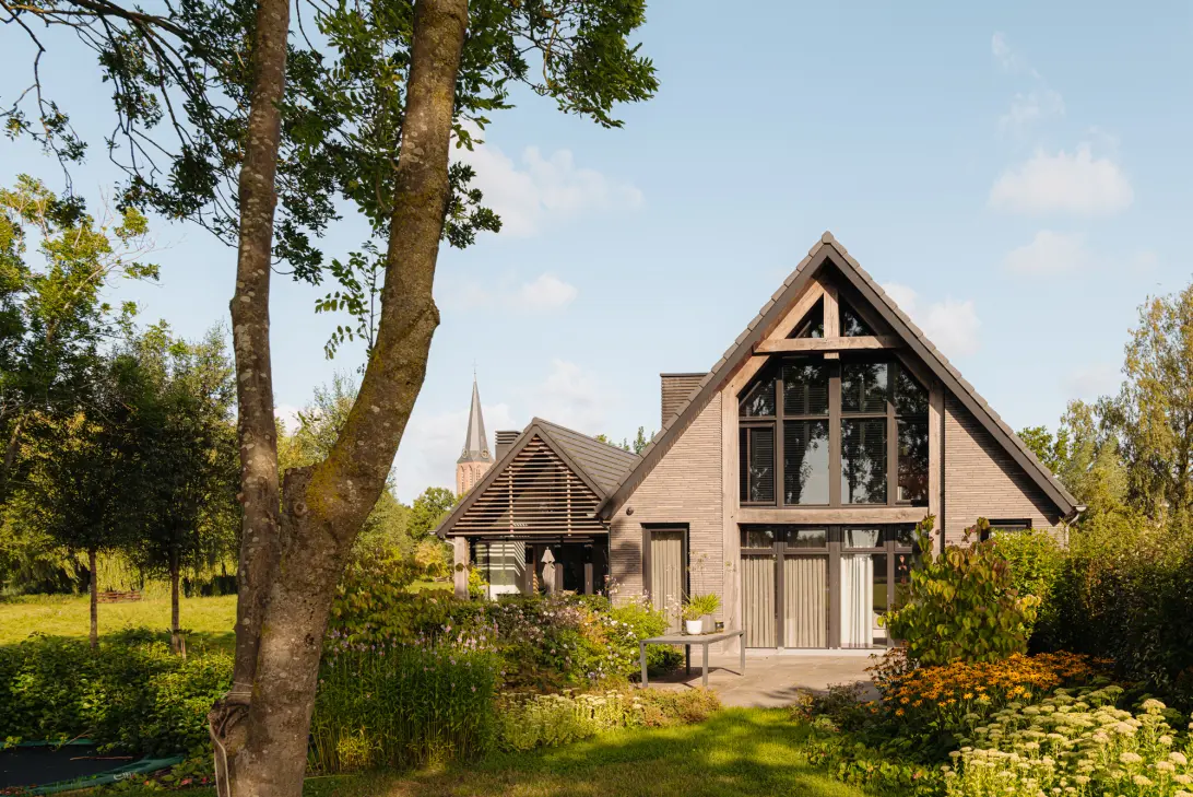 De tuin is met grote zorg en gevoel voor esthetiek aangelegd, voorzien van diverse terrassen, een royaal gazon, weelderige beplanting, bloemen en bomen. Dankzij de doordachte inrichting vloeien binnen- en buitenleven naadloos in elkaar over, met een harmonieuze verbinding naar het omringende natuurlandschap.