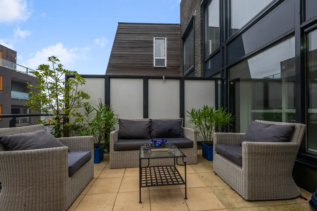 • Een heerlijk zonnig dakterras op het Westen waar je tot in de avond van de zon geniet