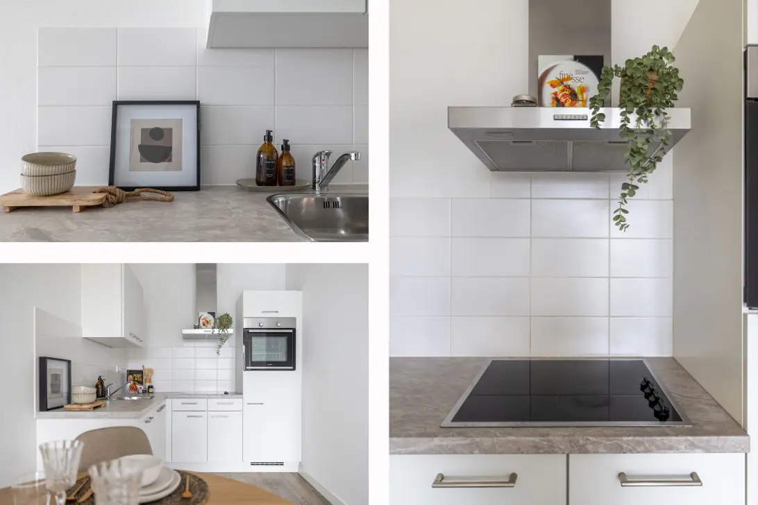 In de moderne keuken vind je alle inbouwapparatuur die je nodig hebt: inductiekookplaat, oven, koelkast, afzuigkap en vaatwasser. Alles strak weggewerkt en klaar voor jouw favoriete recepten.