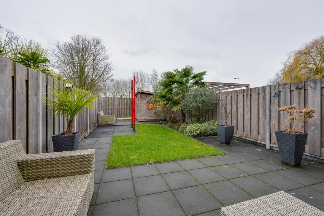 Aan de voorzijde een autoluw hofje met parkeervoorzieningen voor de deur. En aan de achterzijde een heerlijke royale achtertuin gelegen op zonnige zuidoosten. Hier kunnen kinderen afgesloten en onder toezicht heerlijk spelen. De achtertuin is gelegen op het zuidoosten waardoor u de gehele dag kunt genieten van de zon. Gezellig met uw familie barbecueën of lekker in alle rust en privacy zonnen. Het achterste deel van de achtertuin wordt gehuurd van de gemeente Edam-Volendam.