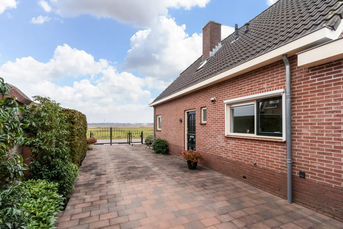 De woning is zeer landelijk gelegen aan een autoluwe weg met aan de voorzijde blijvend, fraai en vrij uitzicht over de landerijen met koeien, ooievaars, reeën en hazen wat uniek te noemen is.