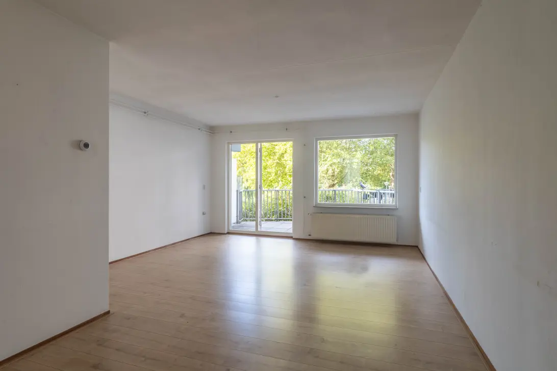 Aan de voorzijde van het appartement bevinden zich twee goed bemeten slaapkamers. De keuken ligt eveneens aan de voorzijde en biedt de mogelijkheid om naar eigen wens in te richten en te moderniseren. De ruime woonkamer van circa 23 m² bevindt zich aan de achterzijde van het pand en wordt gekenmerkt door veel lichtinval. Vanuit de woonkamer heeft u toegang tot het balkon van 11,6 m², gelegen op het zuidwesten, waar u kunt genieten van de middag- en avondzon.