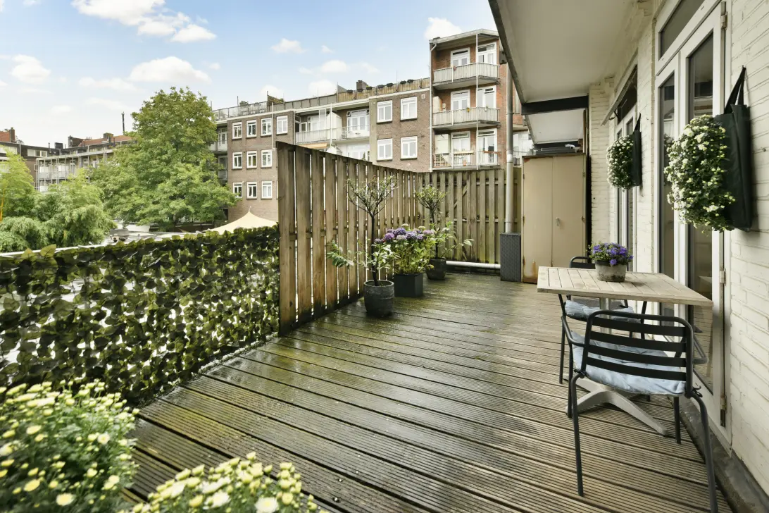 Groot terras aan de achterzijde + twee balkons aan de voorzijde