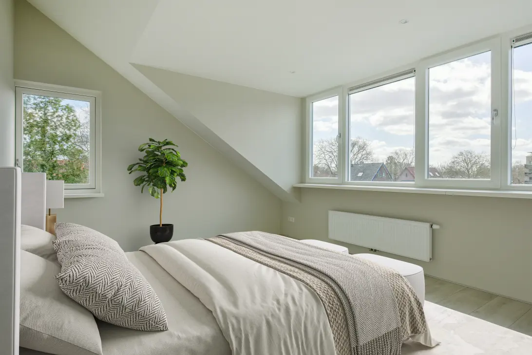 Thanks to the 2 new, large dormers at the front and rear, the top floor can be optimally utilized and here are 2 spacious bedrooms and a sleek and spacious bathroom (2025) created.