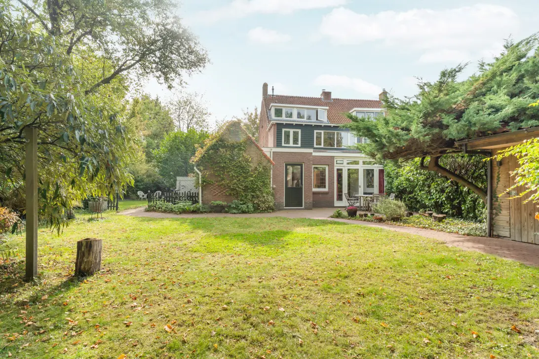 This well-maintained and generously extended family home is located on a quiet and green street in the popular “Markvelt neighbourhood”, close to Fort Abcoude and the pasture with cows and sheep, with only local traffic. A semi-detached house that is unique in its kind. It has its own driveway and a very large, almost surrounding garden (almost 630 m2!) with lots of greenery, sun and shade. The house was thoroughly renovated in 2003 and has been carefully maintained ever since. The extension at the rear has a large skylight and the en-suite layout provides a pleasant balance between light, space and security. There is a quiet corner for every member of the family. The former garage has also been incorporated into the house. It has been converted into a beautiful study with French doors opening onto the garden.