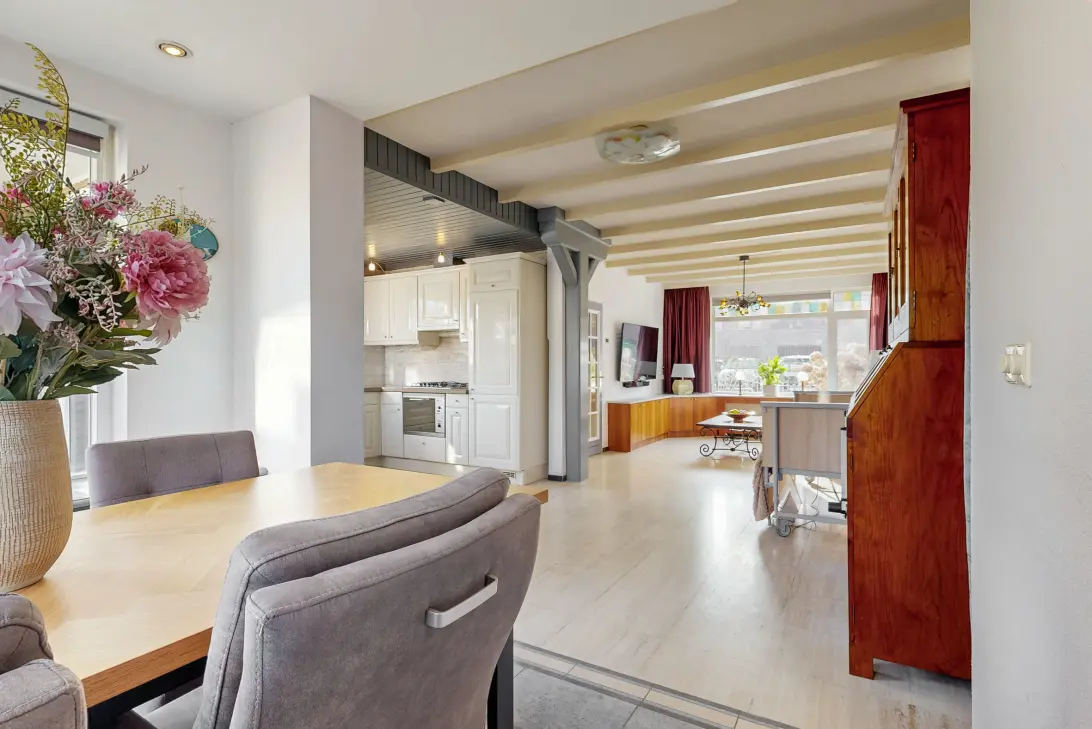 Tot slot heeft deze woning een netjes aangelegde en diepe (ca. 10 meter) tuin met garage.