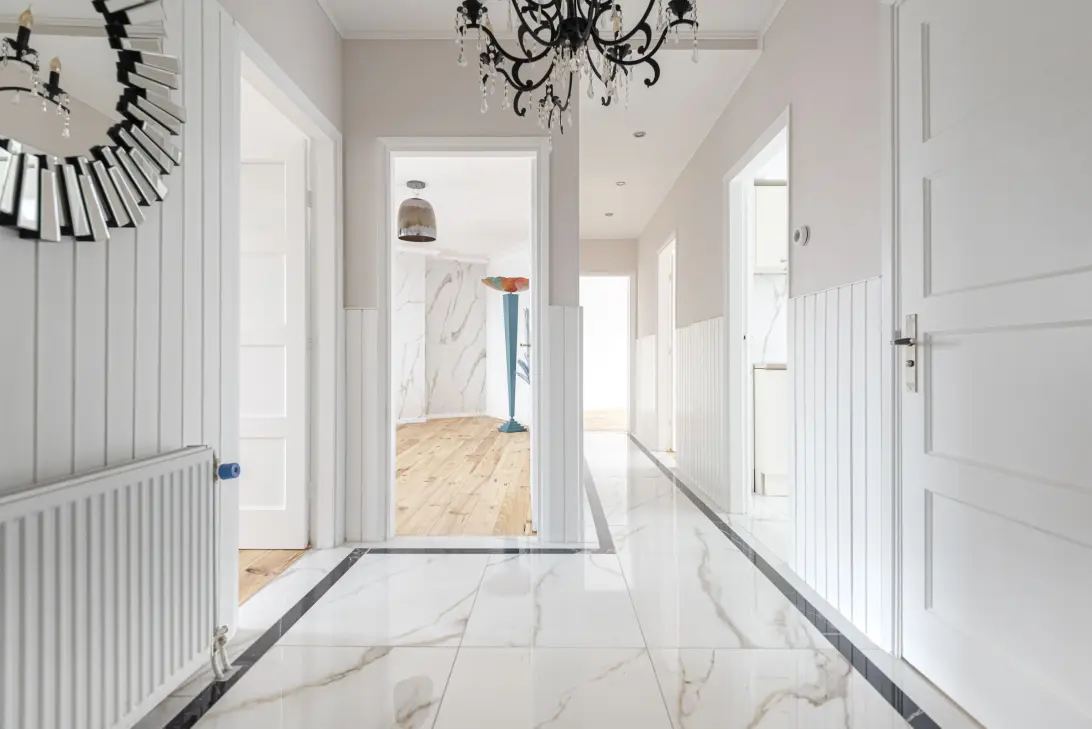 Het charmante appartement is in 2022 stijlvol verbouwd en gemoderniseerd. Daarbij zijn er een nieuwe keuken, badkamer en cv-ketel geplaatst. Alle ruimtes zijn aangepakt van de plinten tot het plafond, waarbij steeds dezelfde stijl is aangehouden. Het heerlijk lichte appartement is voorzien van een prachtige mix van Italiaanse, keramische marmerlook tegels en houten vloerdelen. De prachtige tegels en het verlaagde plafond met sierlijsten en spotjes trekken bij binnenkomst in de hal meteen de aandacht. Ook in de badkamer is het plafond verlaagd en voorzien van spotjes: bij de verbouwing van deze charmante woning zijn de details zeker niet vergeten! De tegels uit de hal komen terug in badkamer en keuken, toilet en bij de voormalige schouw in de woonkamer. In alle kamers ligt dezelfde houten vloer.