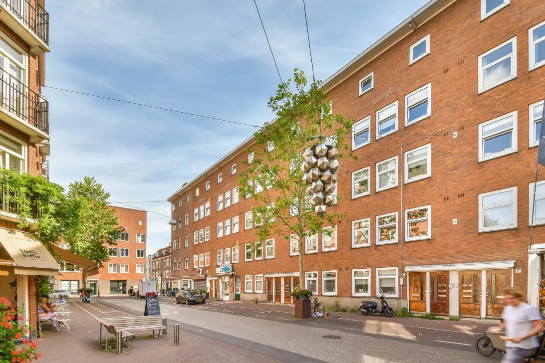 De buurt heeft zich de afgelopen jaren ontwikkeld tot een van de populairste delen van de stad. De Hallen – met haar filmtheater, bibliotheek, foodhallen en creatieve werkplekken – vormt het kloppende hart van de wijk. Daarnaast vind je om de hoek tal van gezellige cafés, koffiebars (een van de beste ligt letterlijk aan de overkant van de straat) en winkels in de Kinkerstraat, De Clercqstraat en op de Bilderdijkkade. Ook het Vondelpark en het centrum/Jordaan liggen op loop- of fietsafstand.