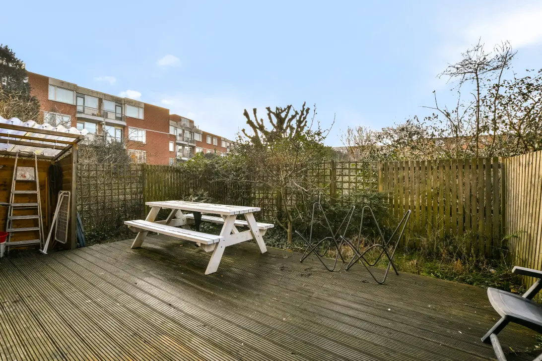 -De tuin grenst aan een enorme gemeenschappelijke binnentuin wat meer een gevoel geeft van een privé park. Vanuit de woning is er directe toegang hiertoe!