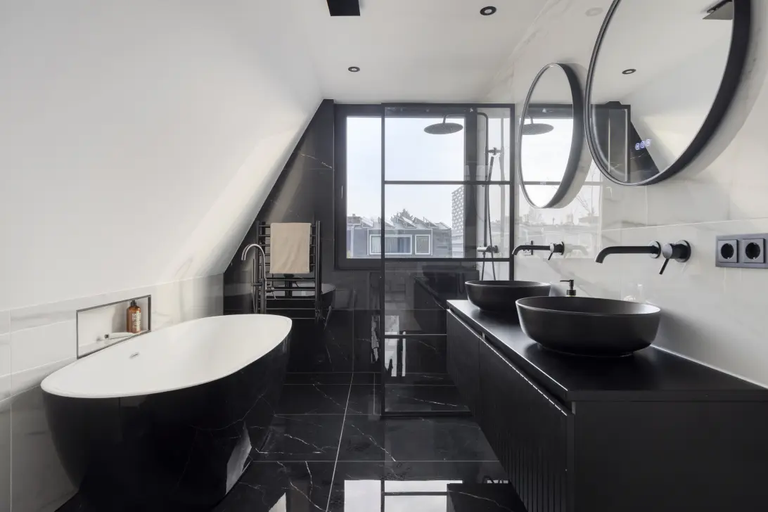 – Een moderne gezinsbadkamer maakt deze verdieping compleet, voorzien van een dubbel wastafelmeubel, toilet, vloerverwarming en een ruime inloopdouche.