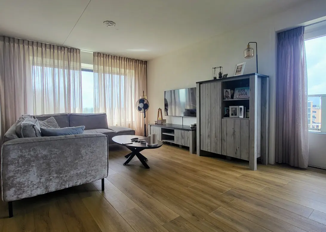 On the seventh floor of the apartment complex "Thamerhorn," we are pleased to offer this spacious apartment. The property is located on the southwest side of the building, ensuring plenty of natural light throughout the day. From the living room and the two balconies, you can enjoy a beautiful view over Uithoorn and the Zijdelmeer. There are few better locations within the building! The kitchen, bathroom, and toilet are neat and modern, making this a move-in-ready home where you can simply settle in and start enjoying your new living space. The apartment also includes a storage unit on the ground floor and a private parking space in the parking garage.