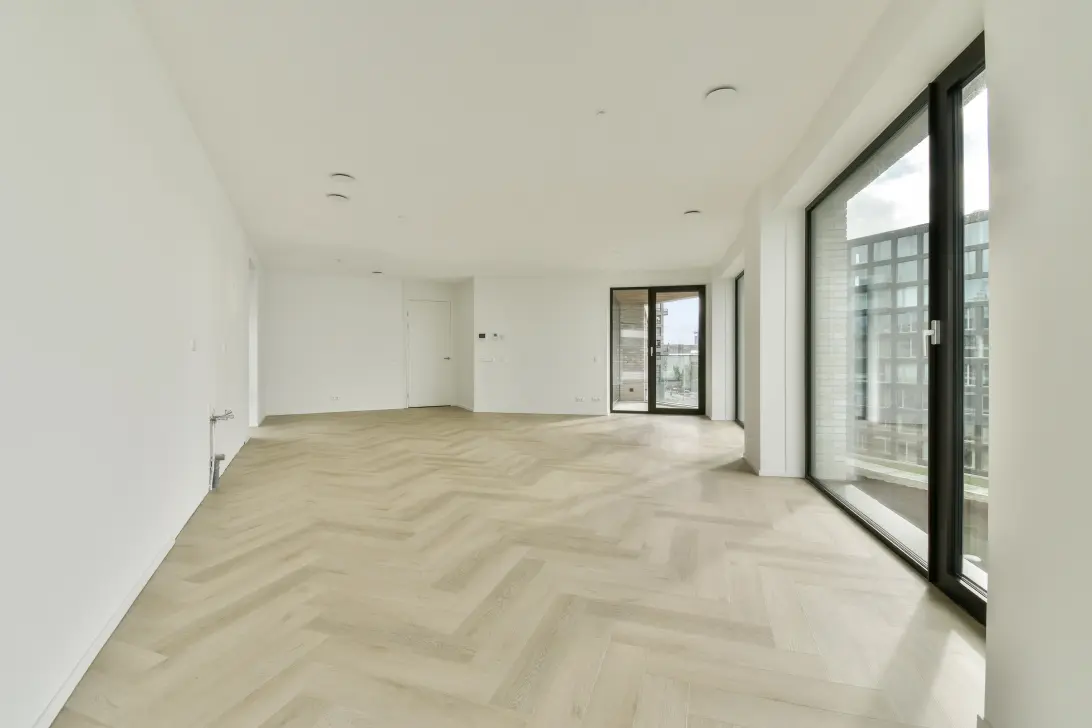 De appartementen zijn slim ingedeeld, waarbij grote raampartijen voor veel natuurlijk licht zorgen.
