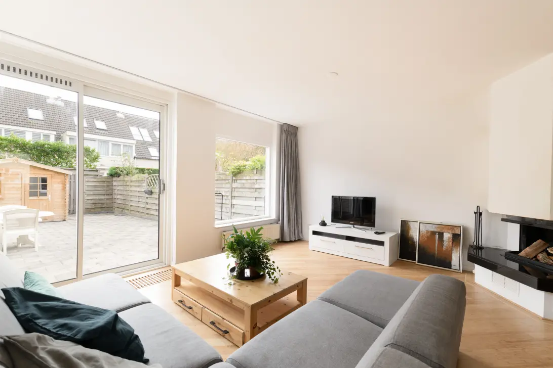 Indeling: entree, toilet, woonkamer voorzien van open haard en een bamboe parketvloer. De keuken is uitgerust met een Siemens oven, vaatwasser, inductiekookplaat afzuigkap en een koel-vriescombinatie.