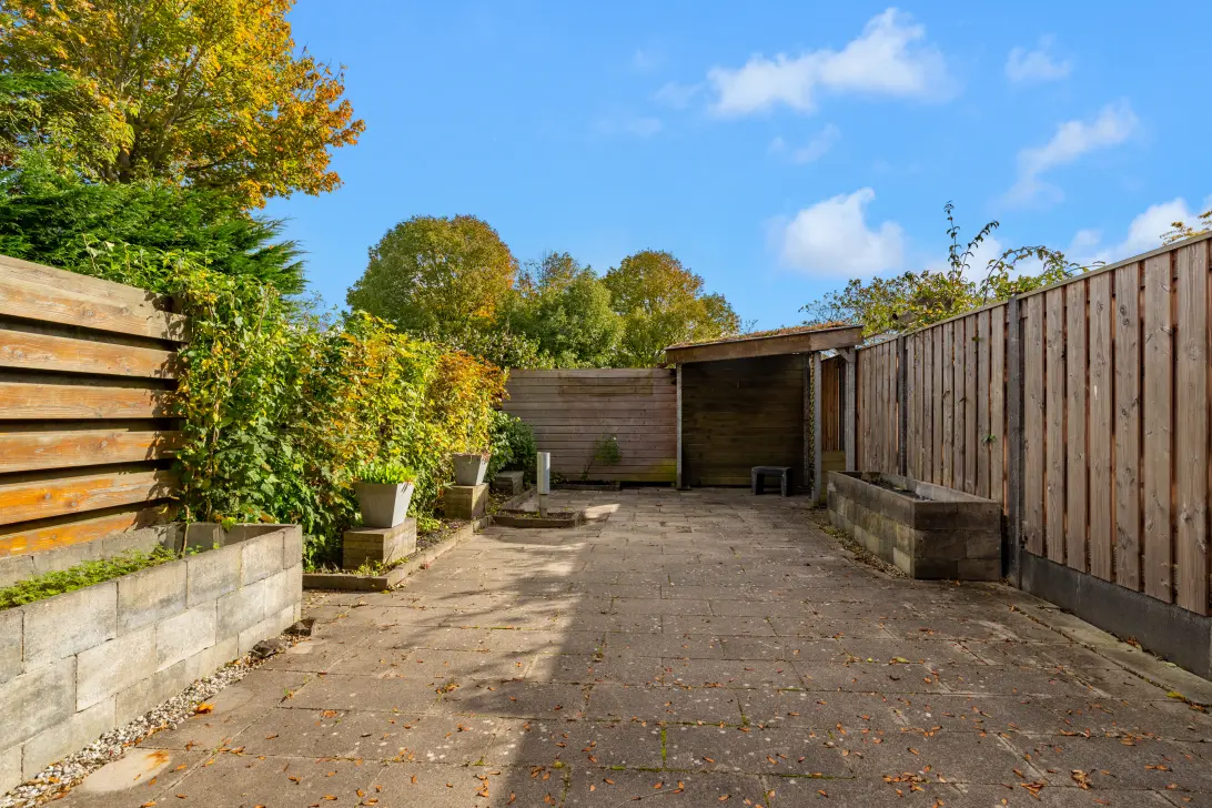 Vanuit de woonkamer stapt u zo de tuin in. Deze ruime tuin is reeds voorzien van de nodige bestrating en dus ideaal voor een gezin met kinderen. Hebben de kinderen behoefte aan nog meer ruimte? Direct achter het huis is een heerlijk grasveld. De achtertuin beschikt over een maximale bezonning en dat allemaal zonder inkijk want ook aan de achterzijde van de woning zit u heerlijk vrij.