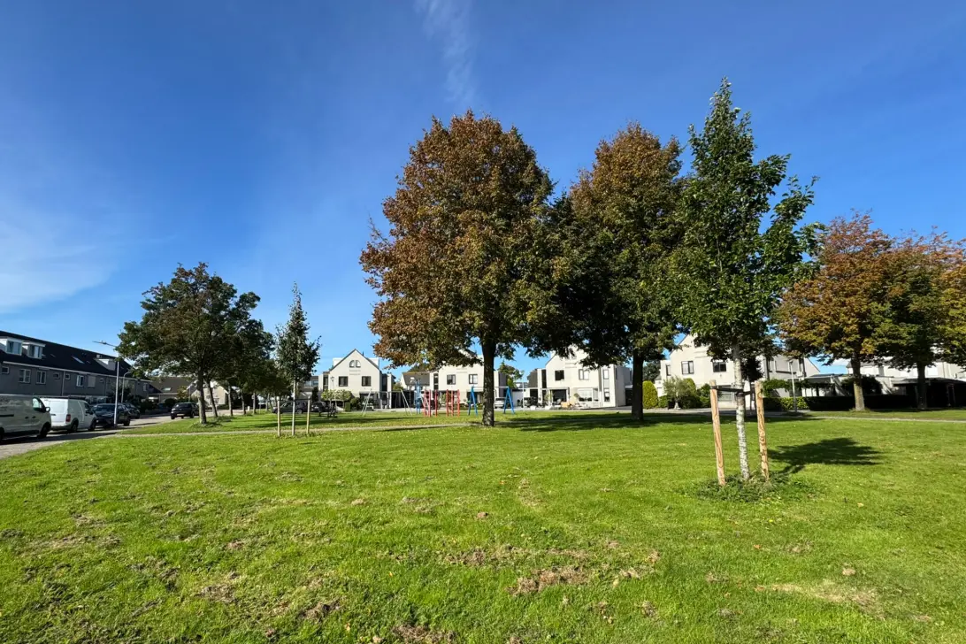 Aan de voorzijde geniet je van een vrij uitzicht over een groen speelveld.