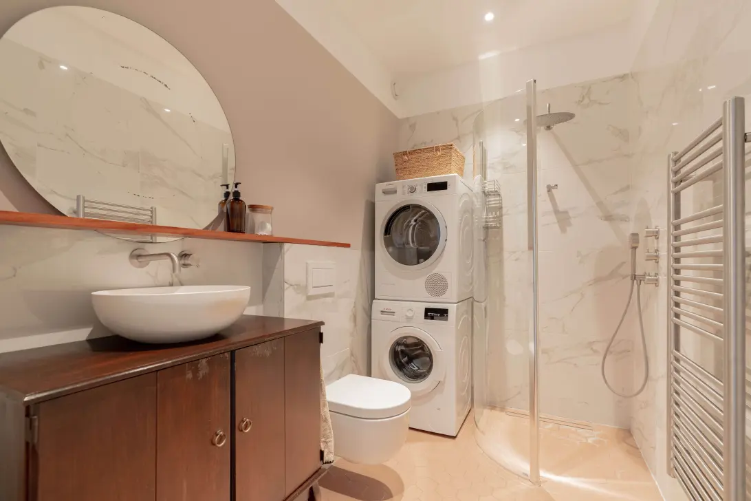 Door de slimme indeling en de praktische inbouwkasten voelt de woning ruim en overzichtelijk aan. De woonkamer is heerlijk licht dankzij de grote openslaande deuren naar de tuin. Hier staat binnen moeiteloos in verbinding met buiten. De keuken is recent vernieuwd en voorzien van een extra diep werkblad, hoogwaardige inbouwapparatuur, waaronder een Miele inbouwoven met stoominjecties, Bora kookplaat met geïntegreerde afzuiging en een vaatwasser. De houten vloer met vloerverwarming geeft het appartement niet alleen optimaal comfort, maar ook een warme en luxe uitstraling.