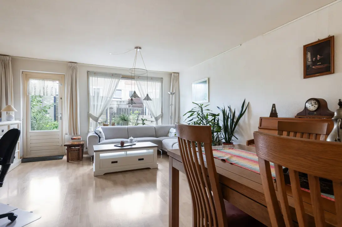 De woning is voorzien van houten kozijnen met dubbel glas, woonkamerraam HR++