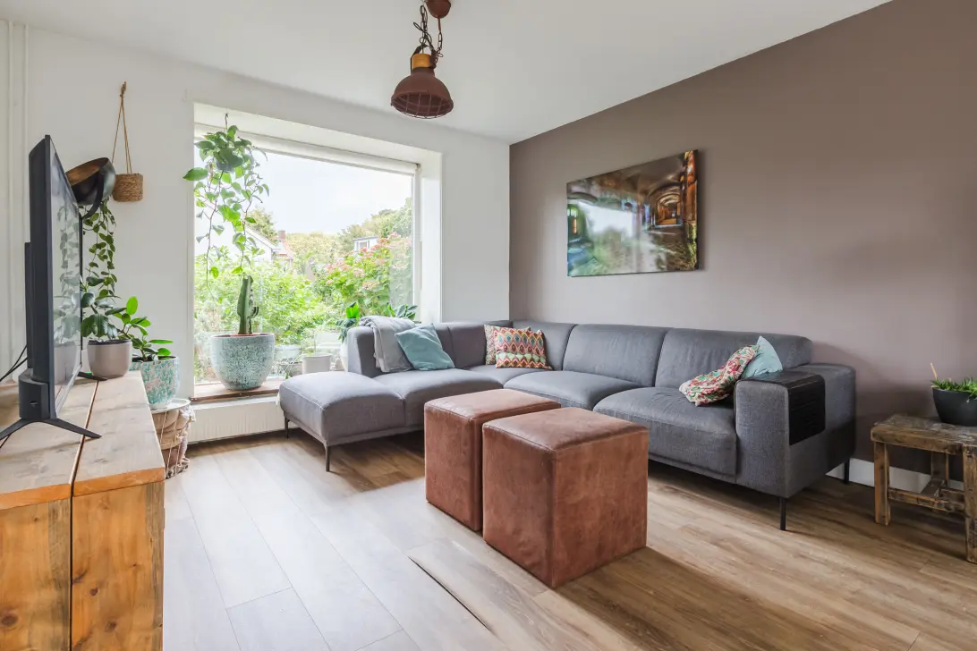 Er is sprake van een nette afwerking met een PVC-laminaatvloer en middels zowel een schuifpui als een extra achterdeur is er toegang tot de tuin.