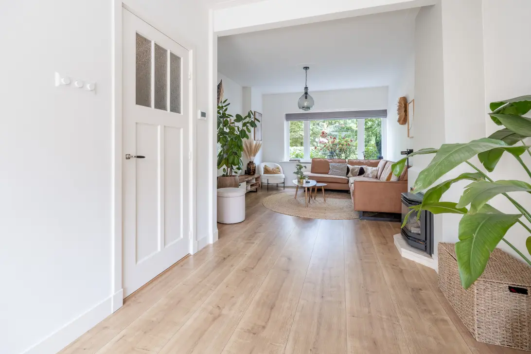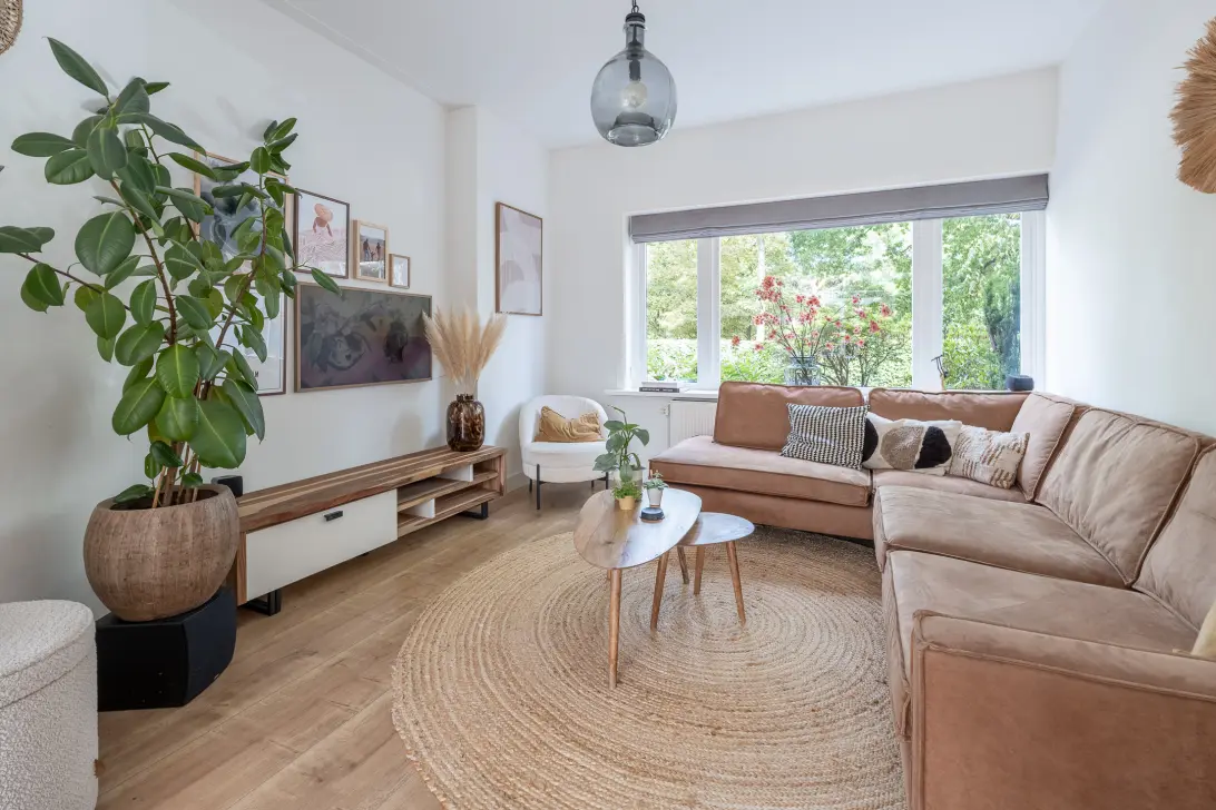 •	uitgebouwde woon-eetkamer met gashaard en openslaande deuren naar de zonnige achtertuin (Zuid)