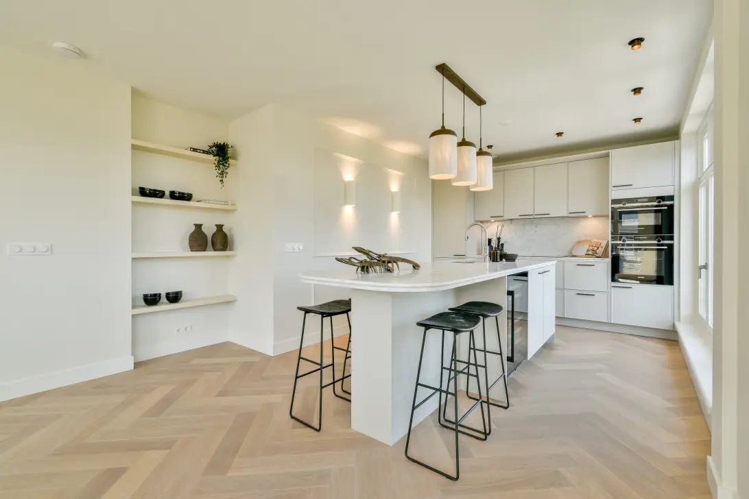- Door het gehele appartement ligt een fraaie houten visgraat parketvloer