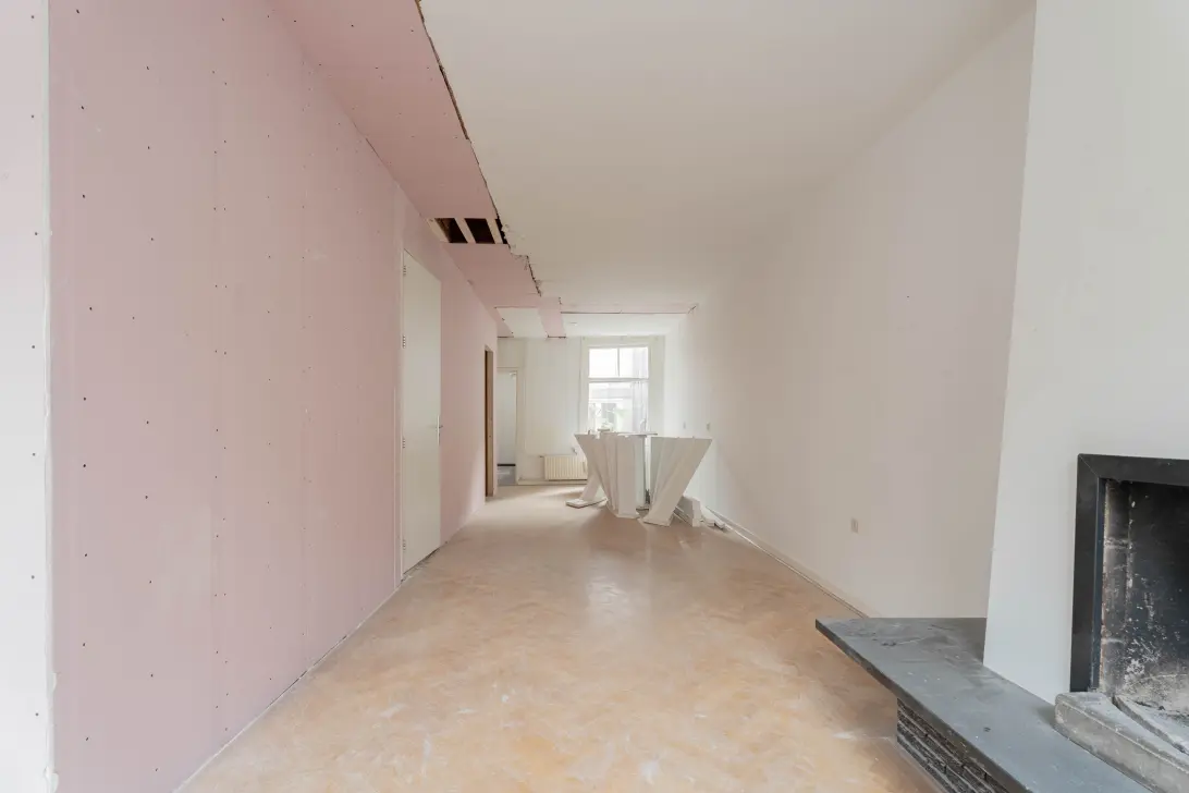 Thans is er geen warmwaterinstallatie en/of verwarming aanwezig; deze dient door de koper zelf te worden aangelegd. De fundering van het pand is hersteld/vernieuwd.