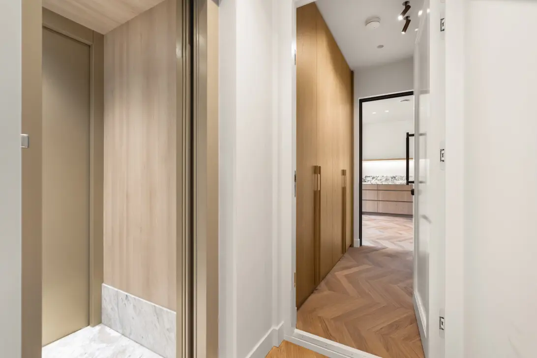Each residence has been upgraded to the highest level, with bespoke kitchens and cabinetry, beautiful French oak herringbone floors with underfloor heating, luxurious bathrooms, and a sophisticated lighting concept. The double-width building with lift stands out thanks to its refined finishes and premium materials, from gunmetal door hardware and stylish lighting throughout to marble worktops and vanities (Calacatta Viola and Calacatta Oro), and handcrafted oak kitchens and furniture.