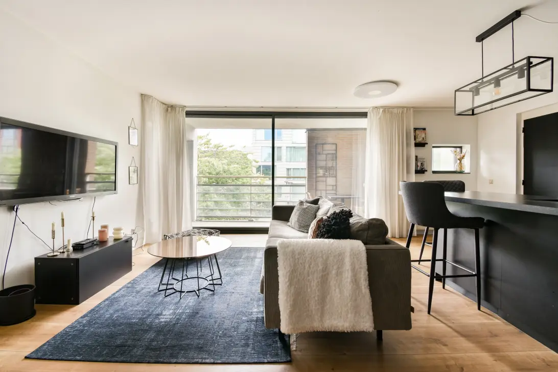 Via de lift of het trappenhuis bereik je de derde verdieping. Je komt binnen in een ruime hal die toegang biedt tot alle vertrekken. De lichte woonkamer met open keuken vormt het hart van het appartement. Via de brede glazen schuifpui stap je zo het balkon op, gelegen op het noordwesten.
