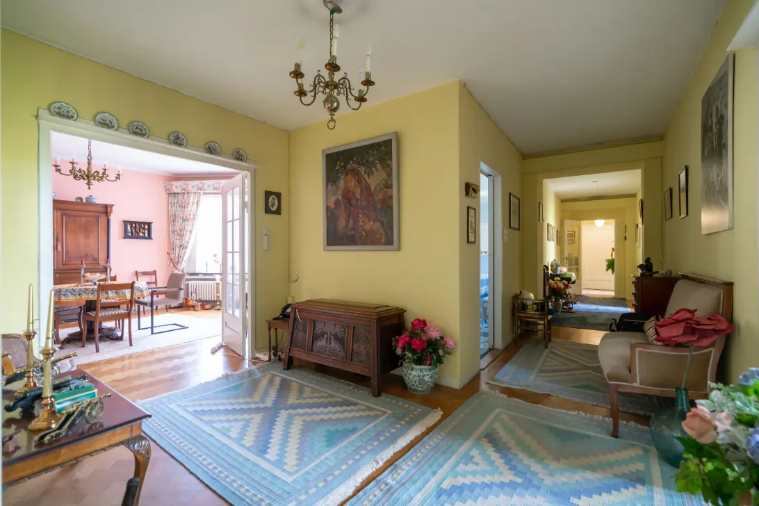 De woning is te bereiken met lift of via het schitterende Art Deco trappenhuis. De flat is thans ingedeeld met onder andere een woonkamer 'en suite’, een grote eetkamer, 4 slaapkamers, 2 badkamers woonkeuken met bijkeuken, garderobekamer en veel bergruimte.