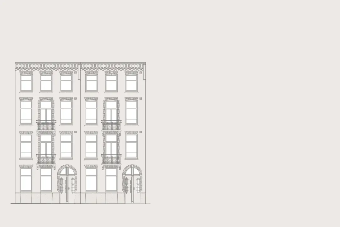 De woning is in 2009 volledig vernieuwd binnen het casco van twee herenhuizen. Alles is gelijkvloers, met directe lifttoegang en een logische, open indeling. De afwerking is modern en rustig, met een witte visgraatvloer, hoge plafonds en veel daglicht.