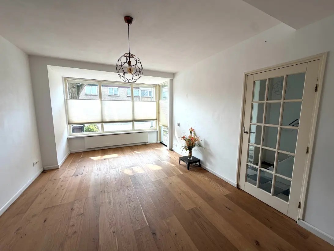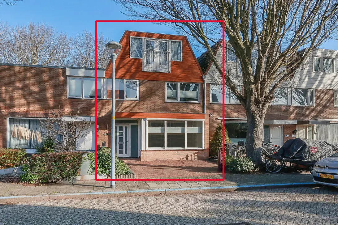 With greenery and water as rear neighbors, you'll live in a fantastic location! This very spacious terraced house features a unique ground-floor extension at the front and an extra-large roof extension, situated in a quiet courtyard with only designated traffic. There are five bedrooms, a walk-in closet, and two bathrooms, perfect for a family. The living/dining room with French doors leading to the garden is wonderfully spacious, as is the kitchen with built-in appliances. Both the front and back gardens are very low-maintenance, and the double shed offers ample space for (children's) bicycles.