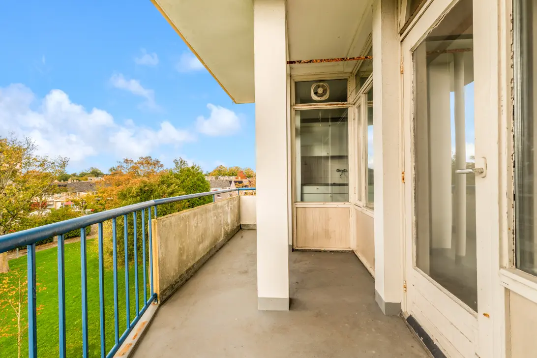 In de keuken staat een eenvoudig keukenblok zonder apparatuur, maar de ruimte biedt genoeg mogelijkheden om hier een droomkeuken van te maken. De keuken is voorzien van een vaste (voorraad)kast en biedt toegang tot zowel het balkon als de badkamer. Het balkon biedt genoeg ruimte en is zeer gunstig gelegen op het zuidwesten.
