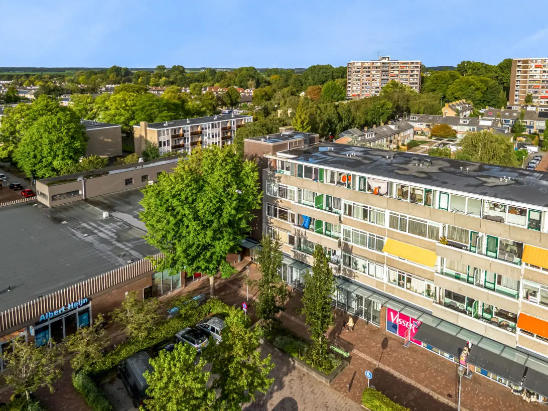 Entree voorzien van intercominstallatie, bergkast en meterkast; nis met wasmachine en droger-aansluiting; moderne vernieuwde keuken voorzien van koelkast met vriesvak, inductieplaat, afzuigkap, vaatwasser en combi-oven. Lichte ruime woonkamer met gestucte wanden en laminaatvloer met toegang tot het ruime balkon op het Zuid-oosten, hier kun je heerlijk van het ochtendzonnetje genieten en heb je leuk uitzicht over het vernieuwde winkelplein.