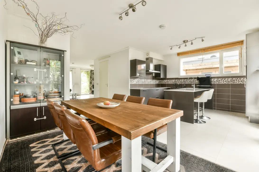 De open eetkeuken is werkelijk het hart van het huis. Deze ruimte is ontworpen voor zowel koken als gezelligheid, met inbouw apparatuur en een overvloed aan opbergruimte en je kan er met gemak een grote eettafel met voldoende stoelen kwijt. Stel je voor dat je 's morgens geniet van een kopje koffie terwijl het zonlicht binnenstroomt, of 's avonds heerlijke maaltijden deelt met vrienden en familie aan die grote eettafel. De tuindeuren en puien bieden een prachtig uitzicht op de tuin rondom, die uitnodigt tot ontspannende momenten in de buitenlucht, met de geur van bloeiende bloemen in de lente of de gouden herfstbladeren in de herfst.