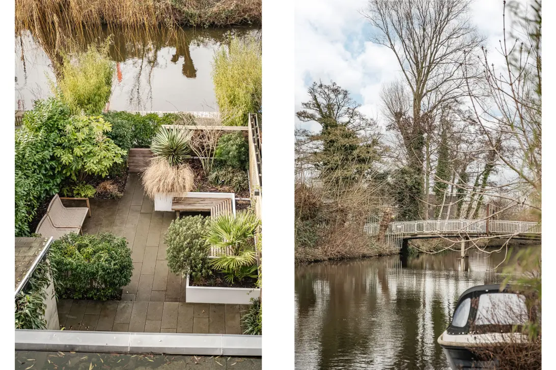 Wat een grandeur! Midden in een charmante en statige straat van Haarlem ligt dit prachtige en verrassende jaren 30 familiehuis. Een woning met veel karakter en allure! Laat je betoveren door de prachtige details zoals de granito vloer, originele wandtegels, glas-in-lood, hoge plafonds, de uitbouw en de openslaande deuren naar de riante tuin! Via het voorportaal treed je de ruime hal binnen. De hal heeft twee leuke doorkijken naar de woonkamer. De woonkamer zelf is heerlijk ruim en voorzien van houtkachel, massieve houten vloer, moderne open keuken en uitbouw voorzien van lichtstraat. Via de openslaande deuren betreed je de onder architectuur aangelegde achtertuin. De tuin ligt op het westen en is een ware oase van groen. Meerdere zitjes en terrassen nodigen uit tot ontspannen, terwijl je aan de waterkant geniet van je eigen aanlegsteiger. Met een diepte van circa 14,5 meter is er volop ruimte om te genieten. Het terras direct aan de woonkamer is voorzien van een zonnescherm, en dankzij de buitenverlichting en het buitenkraantje is het hier tot in de late uurtjes comfortabel vertoeven. Uniek is de prachtig aangelegde achtertuin aan open vaarwater. Hier leg je je eigen sloep aan en vaar je zo de Haarlemse grachten op. Geniet van de lange avondzon aan het water of maak een spontaan tochtje vanuit je eigen tuin.
